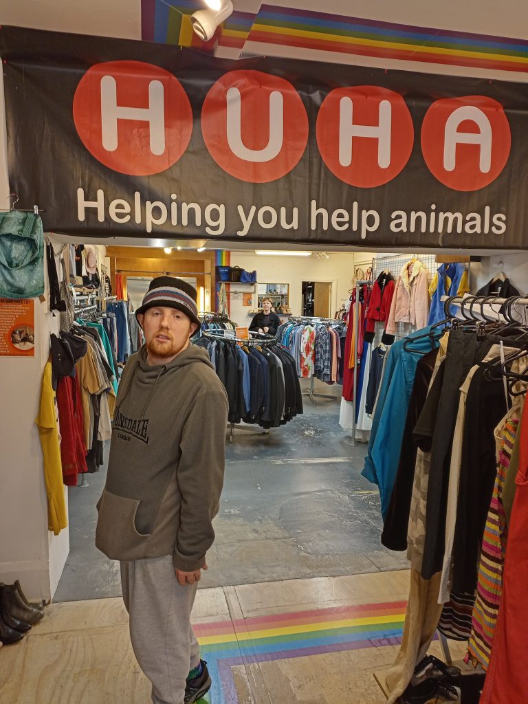 Rohan’s first day volunteering at HUHA (helping you help animals) on Cuba street. He was steaming and tidying clothes around the store.