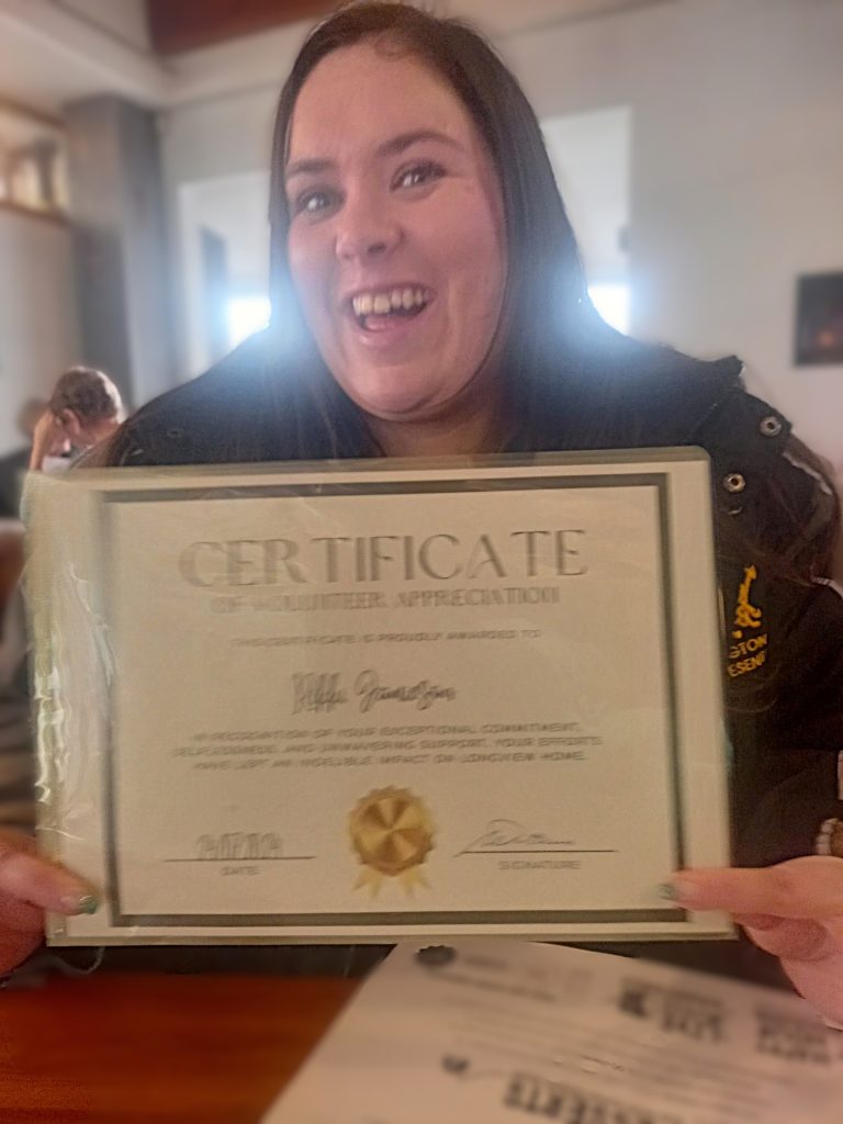 Rikki has been volunteering at Longview Home in Tawa on a Monday afternoon. She’s been bringing joy to the elderly residents by painting their nails and chatting to them. This week she received a certificate of appreciation for the work she does. Great work Rikki!