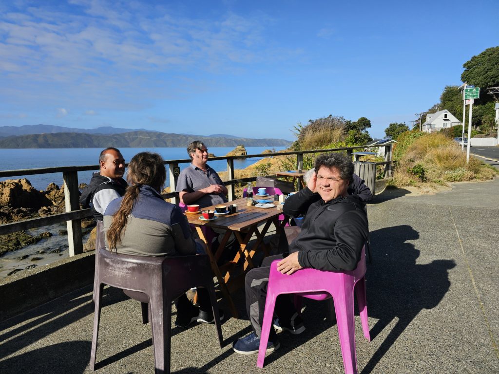 Cafe by the sea on a superb autumn day in Wellington!
