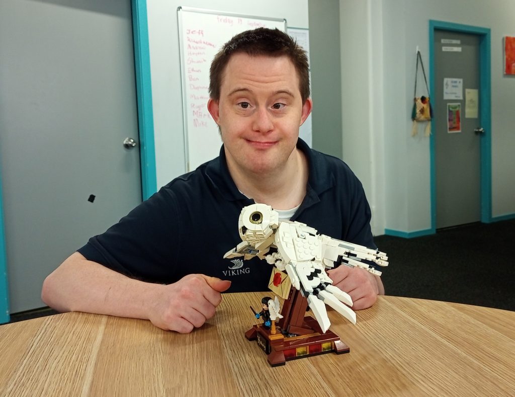 In Lego therapy Tim made Hedwig the snowy owl from the Harry Potter books. If you look closely, you can see Harry in the photo too.